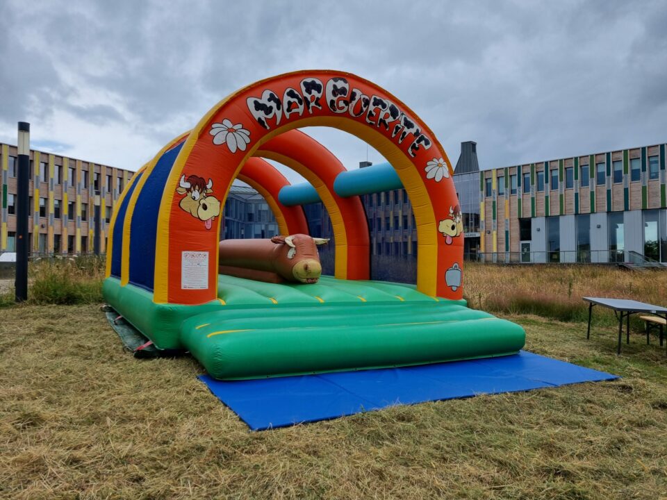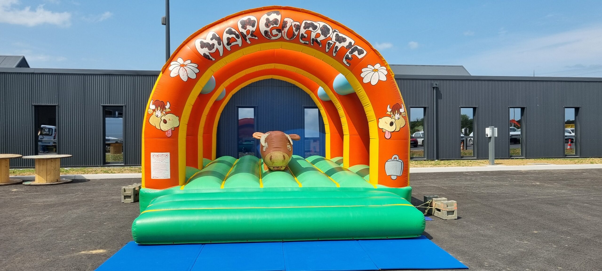 Apportez une touche d’originalité et de bonne humeur à votre événement avec la Vachette “Marguerite”, une structure gonflable unique qui fait toujours son effet auprès des enfants. Avec son design amusant, ses couleurs vives et sa vachette à bascule, elle attire immédiatement l’attention et crée un espace de jeu convivial pour les anniversaires, fêtes communales, écoles, kermesses ou événements familiaux en Bretagne.